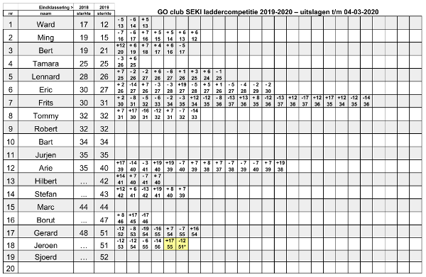 N.a.v. de persconferentie van de regering van di. 13-10-2020 en tijdelijksluitingsbericht van de Wijkvereniging Essesteijn is de Go-club Seki wederom gesloten. We houden voorlopig geen sessies op de woensdagavonden.